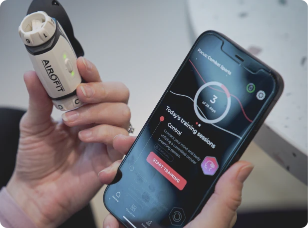 Con la aplicación Companion, Airofit Pro mide tu función respiratoria y ajusta tu entrenamiento en consecuencia. Conecta a tu entrenador y obtén programas de entrenamiento personalizados, orientación y comentarios en directo, y estadísticas que garantizan mejoras claras y comprensibles. Airofit Pro elimina las conjeturas del trabajo respiratorio.