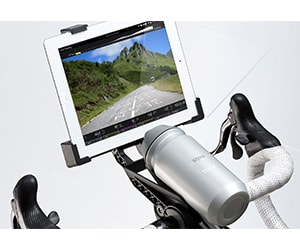 Mira la pantalla sin que le caiga sudor encima. Este soporte acopla firmemente la tablet al manillar a una distancia óptima que te permite acceder a aplicaciones y otros medios de entretenimiento mientras entrenas.